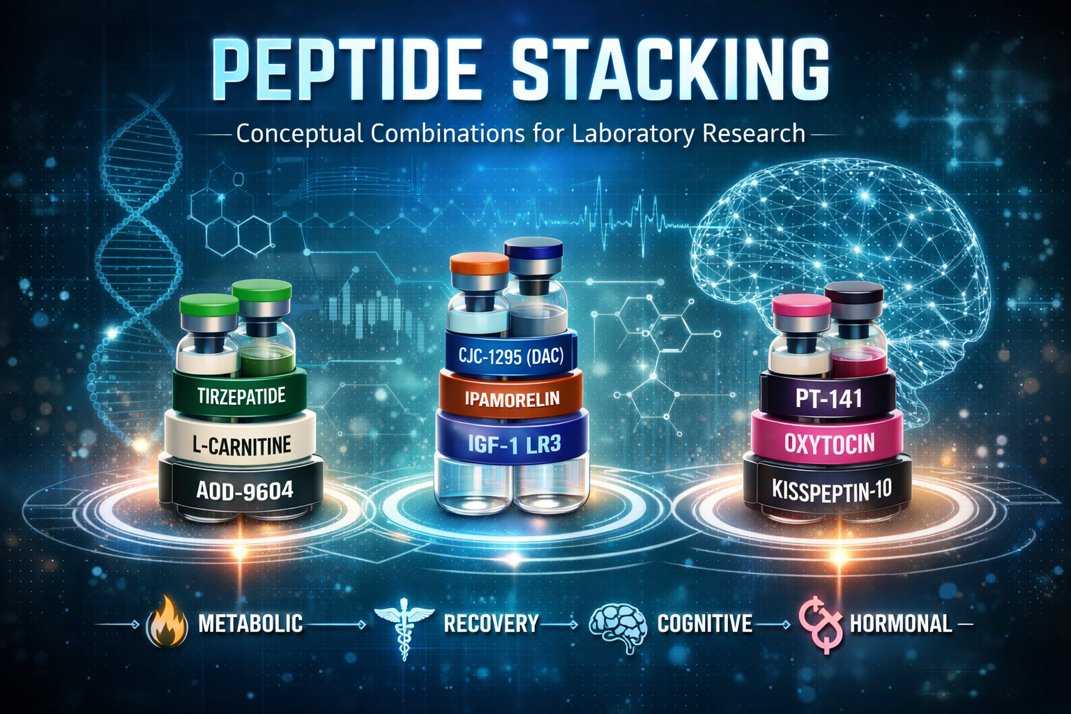 Peptide stacking is the conceptual grouping of laboratory research compounds based on related signaling pathways. Stack groupings are provided for educational purposes only and are not protocols, recommendations, or instructions.